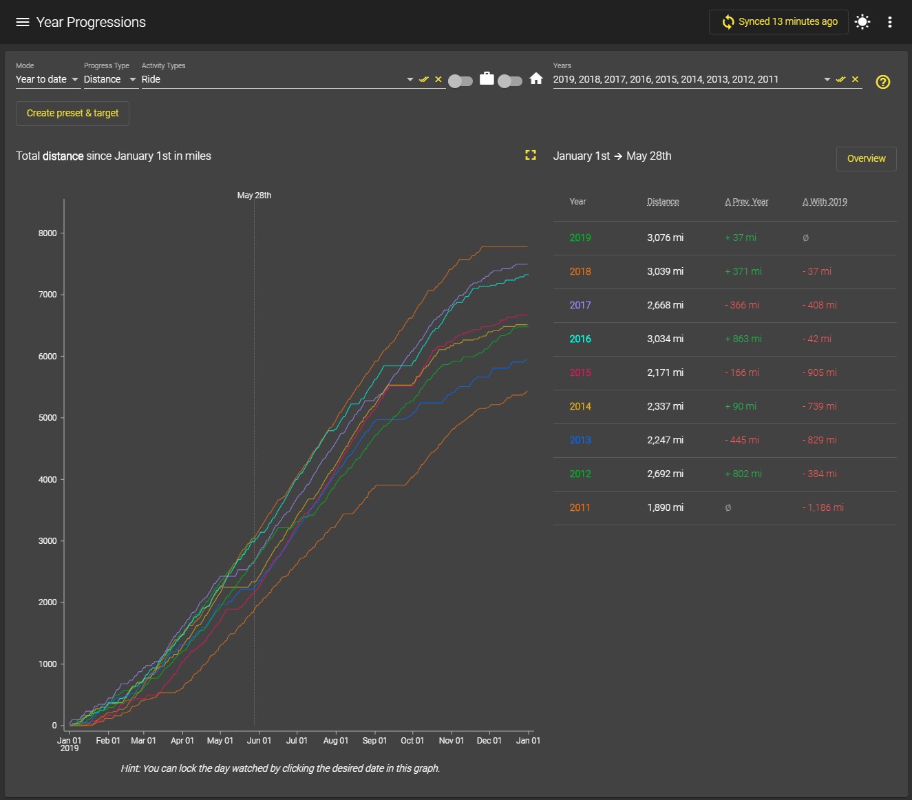 5-28-2019 Strava Year Progressions Graph