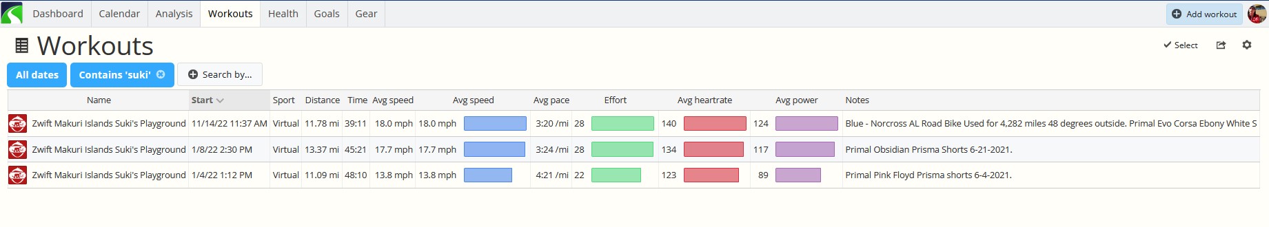11-14-2022 SportTracks YTD Zwift Rides Suki s Playground Published November 14, 2022 at 1841 × 330 in 11-14-2022 SportTracks YTD Zwift Rides Suki s Playground 11-14-2022 SportTracks YTD Zwift Rides Suki s Playground Continue reading → 11-14-2022 SportTracks YTD Zwift Rides Suki s Playground