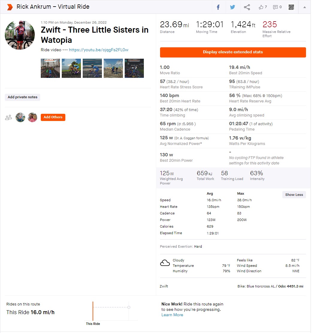 Continue reading →12-26-2022 Strava Zwift Ride Overview Watopia Three Little Sisters