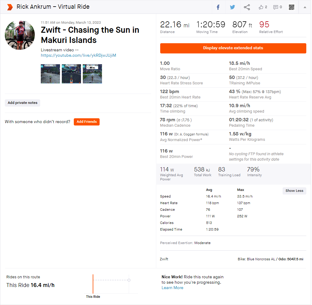 Continue reading →3-13-2023 Strava Ride Overview Zwift Makuri Islands Chasing The Sun