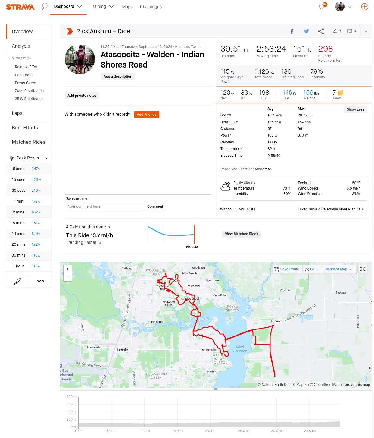 9-12-2024 Strava Summary Atascocita – Walden – Indian Shores Road